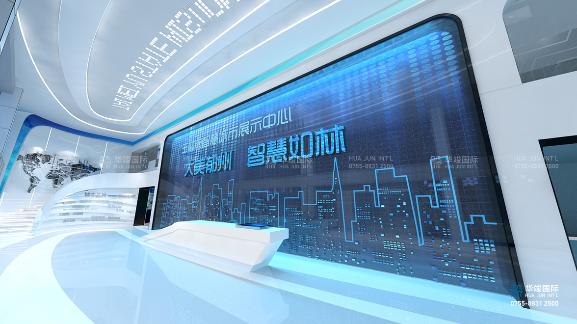廣西玉林智慧數(shù)字城市展廳設計項目由華竣國際執(zhí)行整體設計施工。華竣國際規(guī)劃館設計部以“智慧城市展廳”為起點,結合數(shù)字沙盤、數(shù)字影院、虛擬現(xiàn)實、互動多媒體等技術,打造承載城市歷史、展現(xiàn)城市現(xiàn)在、展望城市未來的智慧規(guī)劃館。